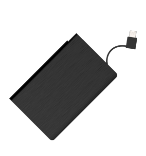 Les deux côtés de notre Power Bank Volt peuvent être marqués en sérigraphie ou au laser avec votre logo, slogan, site internet, informations de vos événements et plus. Avec un câble micro-USB attaché, un Lightning et USB-C, le Volt est le meilleur compagnon des smartphones et tablettes de vos clients et employés.