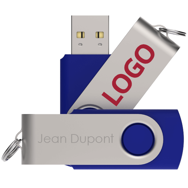 Grâce à sa coque métallique pivotante à 360°, la clé USB Twister sans capuchon peut être imprimée avec votre logo sur ses deux faces. Attachez-la aisément à un jeu de clefs ou lanière grâce à l'anneau porte-clés que nous vous fournissons. La coque extérieure est fabriquée à partir de plastique recyclé certifié GRS.